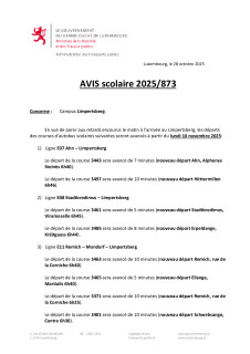AVIS AU PUBLIC ¦ RGTR – Avancement des départs des courses scolaires ¦ Ligne E22 Keispelt – Limpertsberg ¦ à partir du lundi 10.11.2025