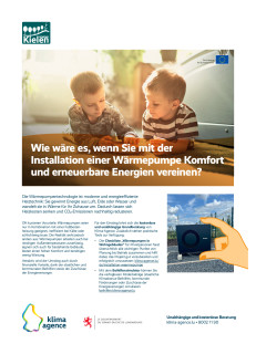 • la check-list pompe à chaleur pour les particuliers, qui résume clairement tous les points essentiels de la planification à l’exploitation et aide à préparer et réussir votre projet : klima-agence.lu/installation-pac