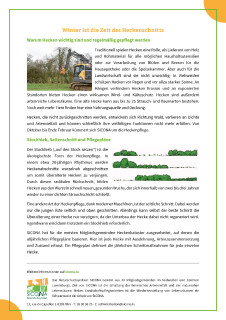 Hecken, die nicht zurückgeschnitten werden, entwickeln sich Richtung Wald, verlieren an Dichte und Artenvielfalt und können schließlich ihre vielfältigen Funktionen nicht mehr erfüllen. Von Oktober bis Ende Februar kümmert sich SICONA um die Heckenpflege.