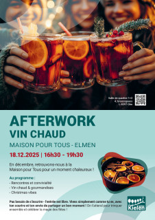 2025-12-17 23:00:00+00:00 16:30 19:30Afterwork - Vin chaud ¦ Maison pour Tous - Elmen