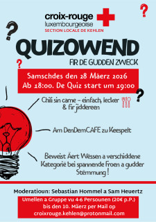 D’Croix-Rouge luxembourgeoise - Section Locale de Kehlen - lued häerzlech op e Quizowend an.