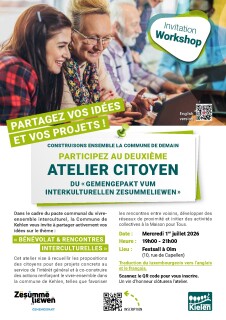 2026-07-01 00:00:00+02:00 19:00 21:00Deuxième atelier citoyen du « Gemengepakt vum interkulturellen zesummeliewen »